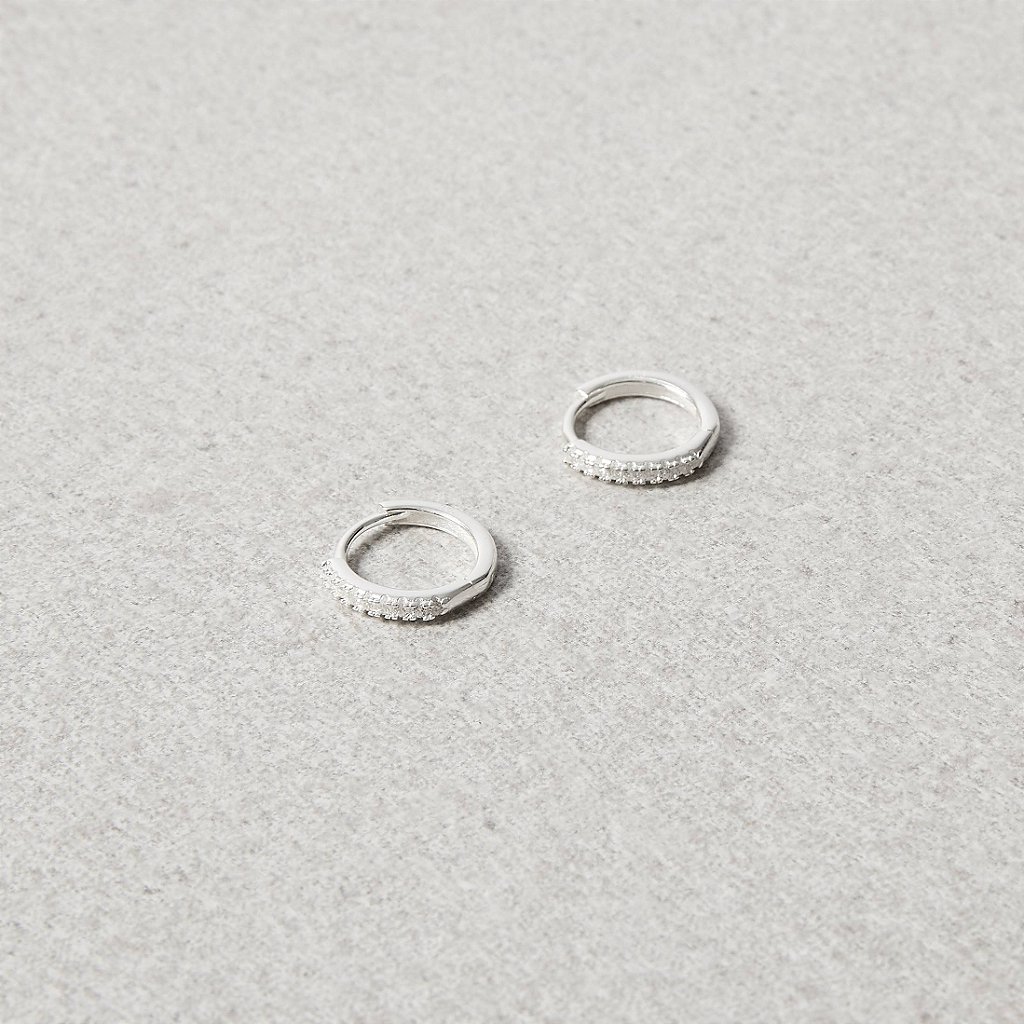 A Argola Click Cravejada 13mm Fio Meia Cana em Prata 925 é elegante, moderna e cheia de brilho.