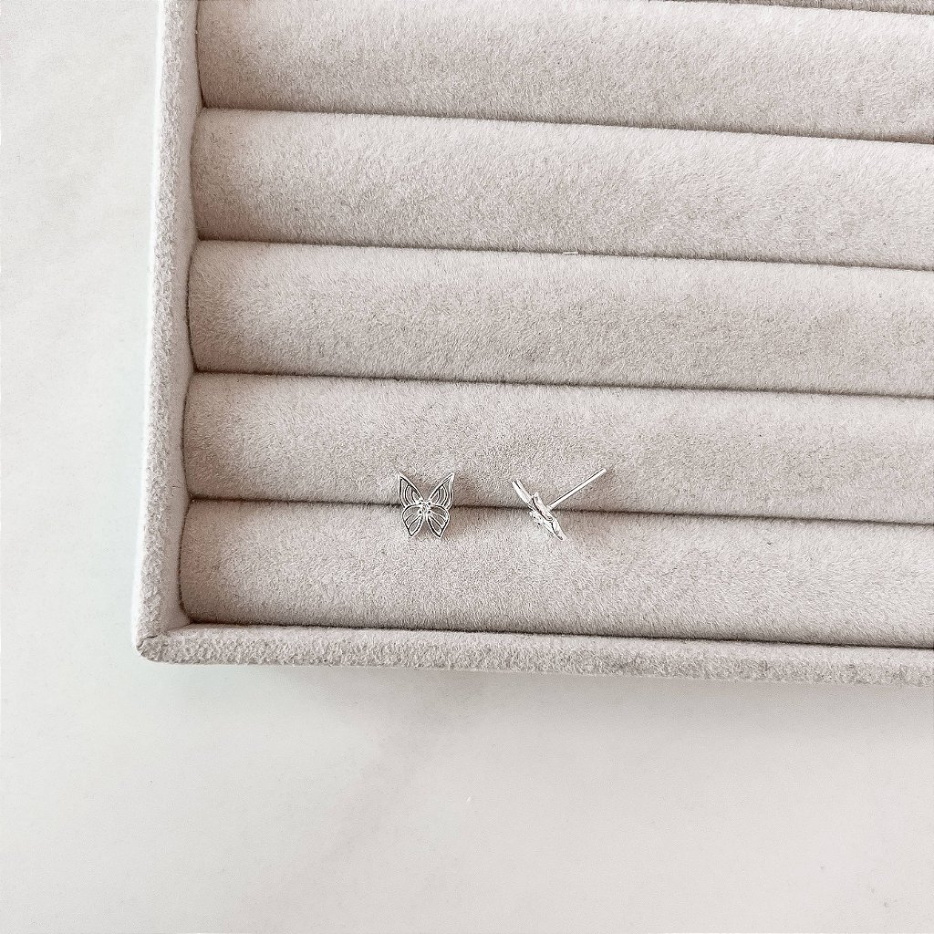 O Brinco Borboleta Vazada com Zircônia 9mm em Prata 925 é delicado, leve e cheio de charme.