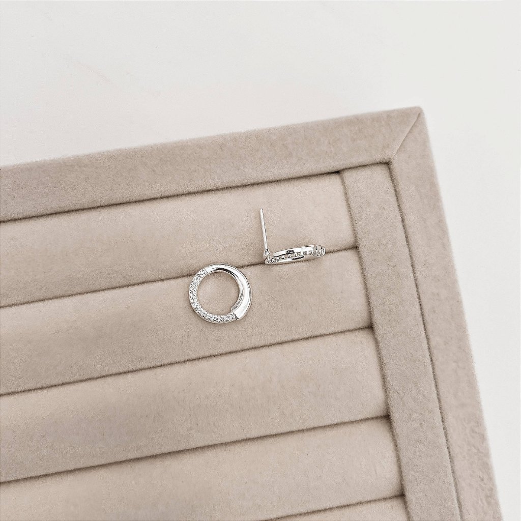 O círculo vazado deixa o visual leve e elegante, enquanto o detalhe cravejado adiciona um brilho discreto e sofisticado — ideal para o dia a dia ou para compor mix de brincos.