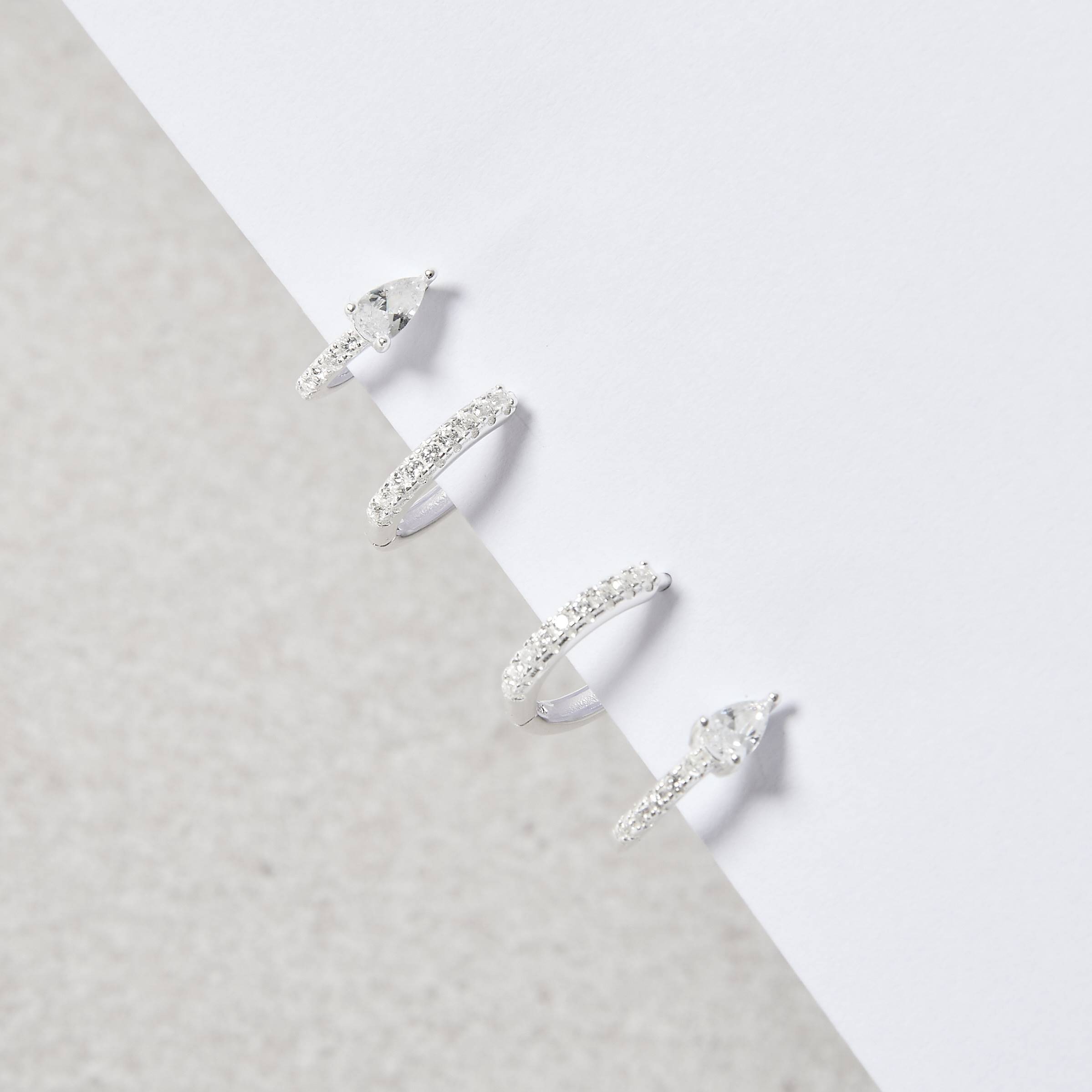 Uma argola traz uma zircônia em formato de gota – 12mm, superbrilhante e delicada.